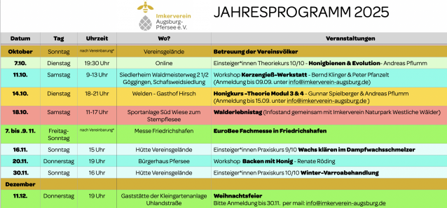 Bitte meldet euch bis spätestens Samstag, den 11. Oktober per Mail an: info@imkerverein-augsburg.de