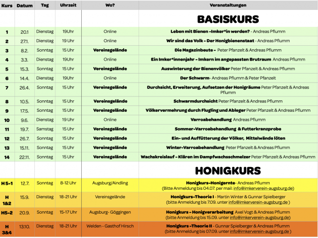 Für alle Neu- und Wiedereinsteigerinnen und -einsteiger bieten wir wieder unseren bewährten Basiskurs für Jungimkerinnen und Jungimker an.